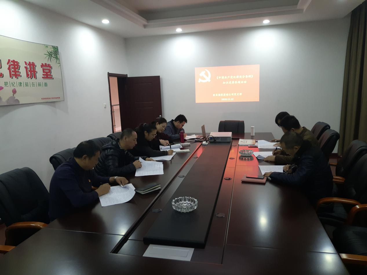 為切實(shí)做好新修訂的《中國共產(chǎn)黨紀(jì)律處分條例》的學(xué)習(xí)貫徹,深入推進(jìn)公司黨風(fēng)廉政建設(shè)和反腐工作,使嚴(yán)格遵守黨紀(jì)國法的理念深入人心,進(jìn)一步增強(qiáng)拒腐防變和抵御風(fēng)險的能力,2018年11月12日上午,基礎(chǔ)公司紀(jì)檢監(jiān)察室會同黨支部在紀(jì)律講堂舉行了《中國共產(chǎn)黨紀(jì)律處分條例》知識競賽答題活動。