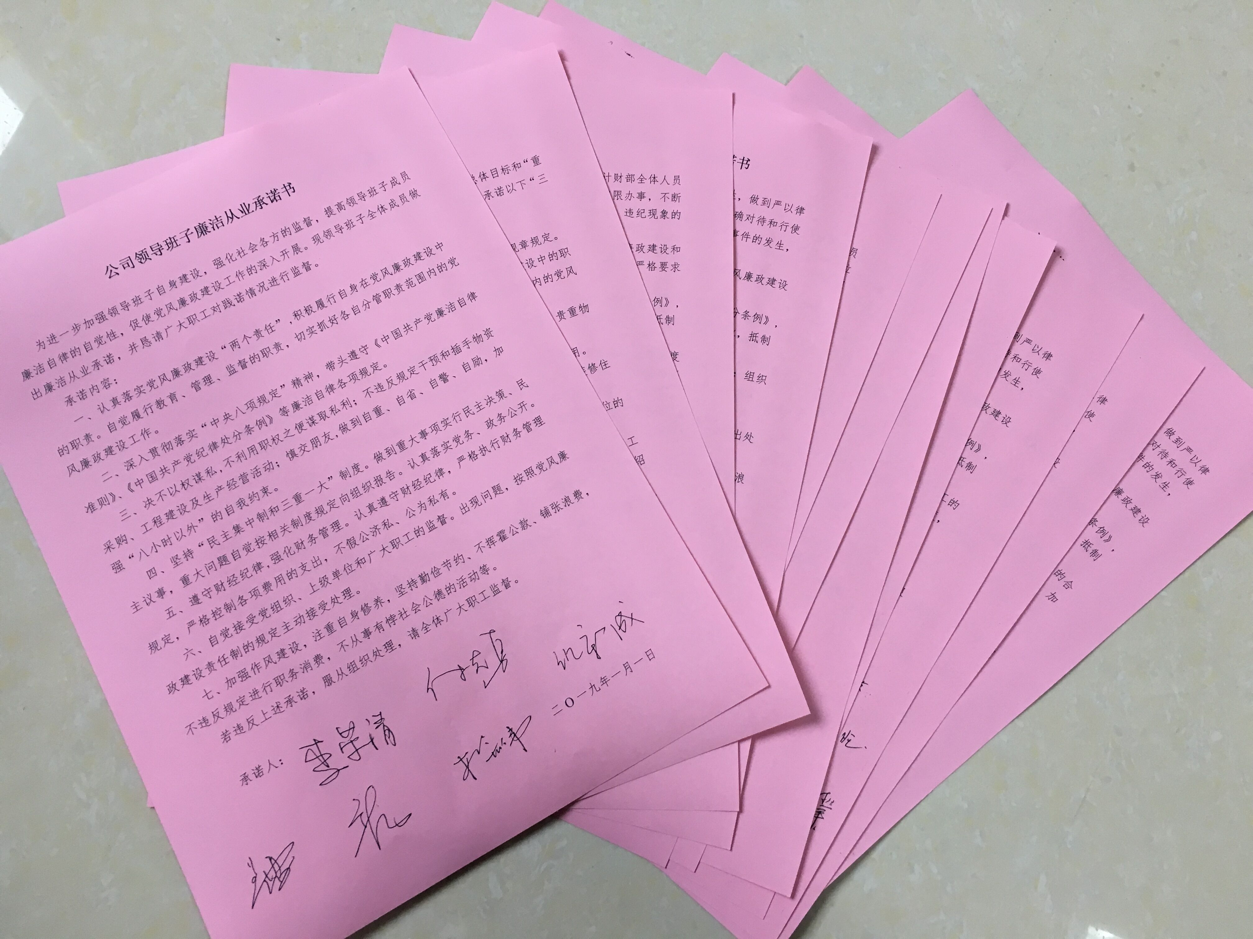 為進一步強化黨風廉政建設,增強廉潔自律的意識與自覺性,高速公司紀檢監(jiān)察室組織公司領導班子、各部室、站所負責人分別簽訂了2019年黨風廉政建設責任書,共11份,責任書把反腐工作與各部室自身工作相結合,從遵守規(guī)章條例、加強作風建設、嚴明紀律規(guī)矩、管理監(jiān)督職責等方面內(nèi)容,進一步明確責任,做到一級抓一級,層層抓落實。