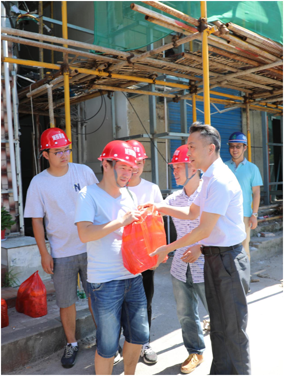 送清涼,亦送溫暖,漆書(shū)記一行代表集團(tuán)工會(huì)為項(xiàng)目辦工作人員送去了組織的關(guān)懷。 每到一處,慰問(wèn)小組都會(huì)仔細(xì)詢(xún)問(wèn)工程的建設(shè)進(jìn)展情況、項(xiàng)目的防暑降溫工作落實(shí)情況和高溫期間的工作安排。漆書(shū)記在現(xiàn)場(chǎng)叮囑大家要針對(duì)高溫天氣,精心組織,科學(xué)施工,合理安排,做好防暑降溫和安全生產(chǎn)工作,切實(shí)保障項(xiàng)目辦工作人員的安全健康。